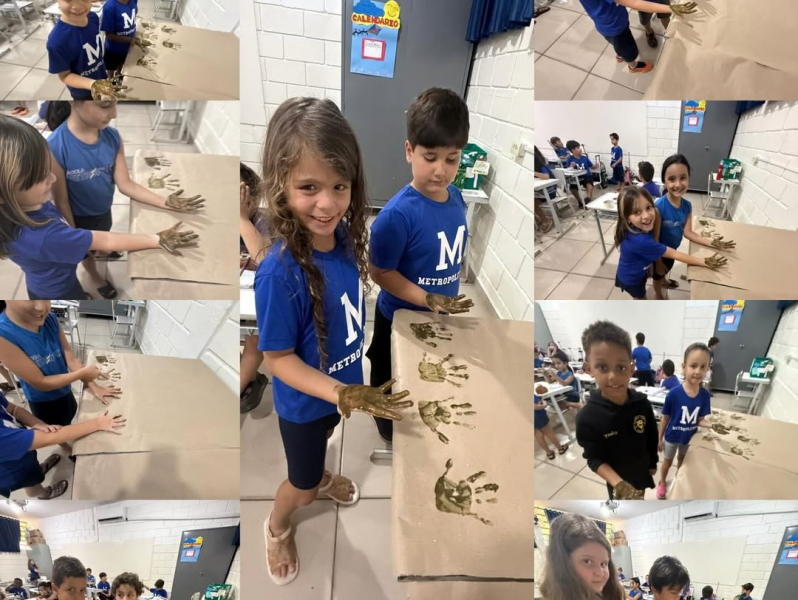 Durante o estudo sobre a Pré-História, a turma conheceu a Cueva de las Manos, localizada na Argentina, onde povos antigos registraram marcas de mãos e cenas do cotidiano nas paredes da caverna. As pinturas rupestres revelam que, desde aquele período, as pessoas já viviam em grupo, caçavam juntas, dividiam tarefas e cuidavam umas das outras.