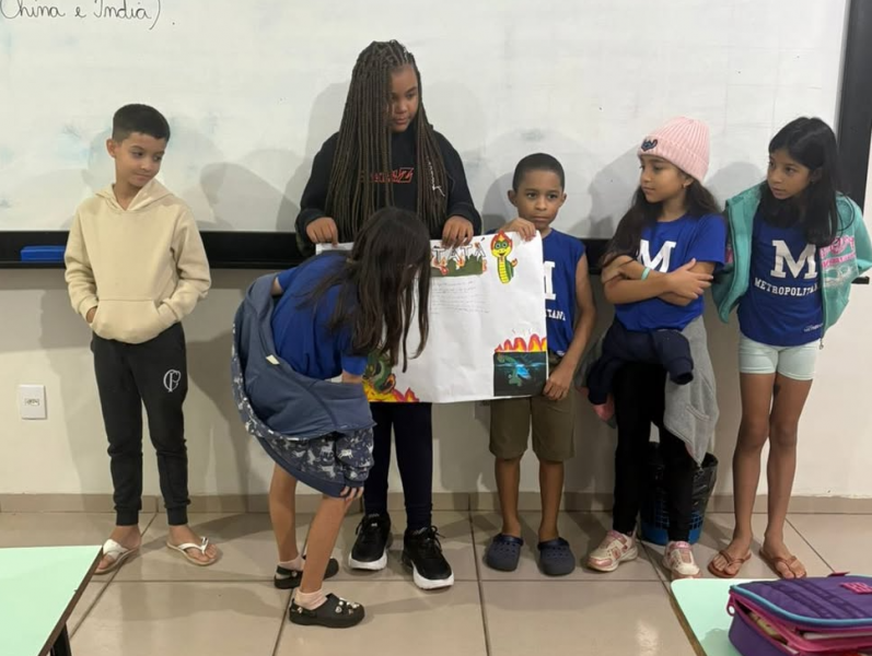 Os estudantes realizaram pesquisas em casa, compartilharam as informações com os colegas, elaboraram cartazes e apresentaram seus trabalhos nas salas da escola. A proposta proporcionou um momento significativo de aprendizado, estimulando a criatividade, o protagonismo e o desenvolvimento das habilidades de leitura, escrita e comunicação.
