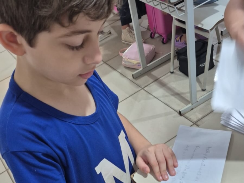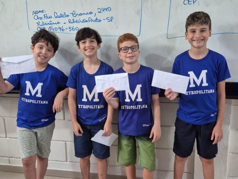 Durante as aulas, os estudantes conheceram a estrutura desse tipo de texto, identificando elementos como remetente, destinatário, saudação, mensagem e despedida. Em seguida, cada aluno produziu sua própria carta e aprendeu a preencher o envelope corretamente.