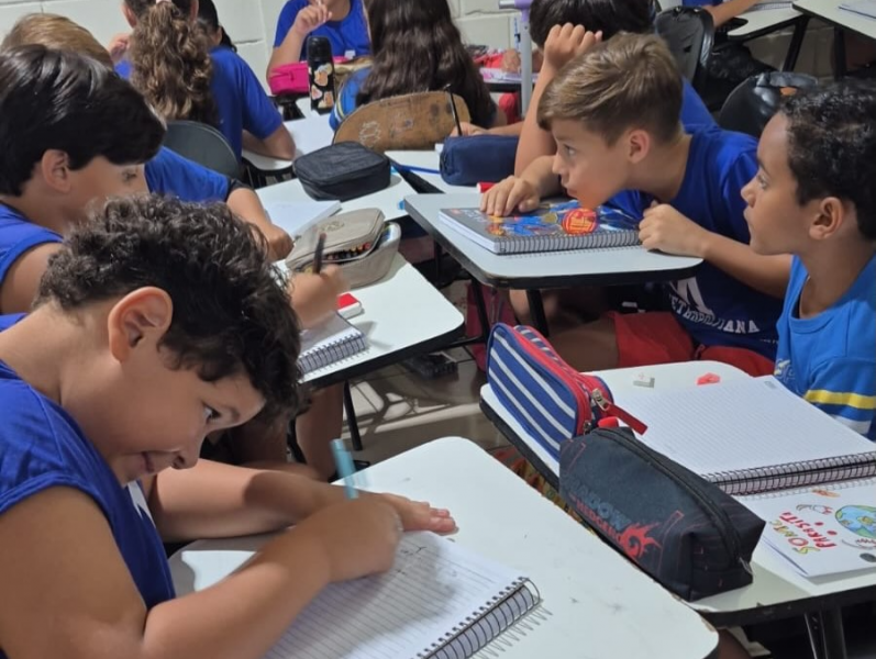 O ano letivo começou com muita criatividade e entusiasmo no 5º ano. Como uma das primeiras atividades de volta às aulas, os alunos estão desenvolvendo produções textuais a partir de contos e transformando suas ideias em um formato inovador: o podcast.