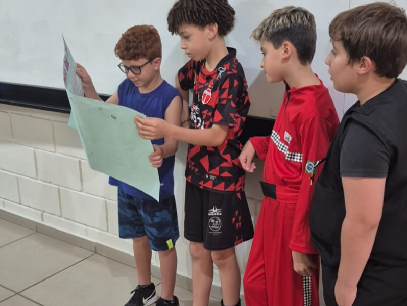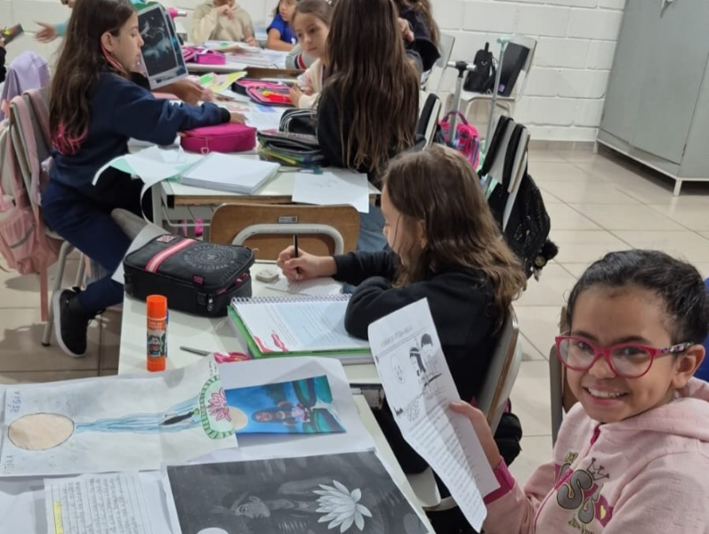 Sob a orientação da professora Carina, os alunos dos 4º anos participaram de uma atividade especial voltada ao estudo das lendas indígenas, unindo pesquisa, produção textual e apresentação oral.