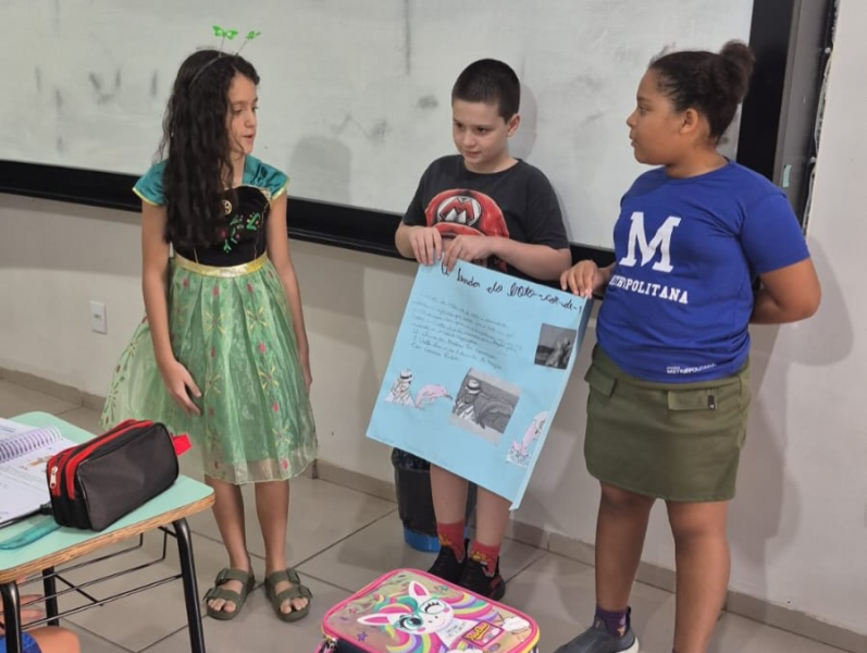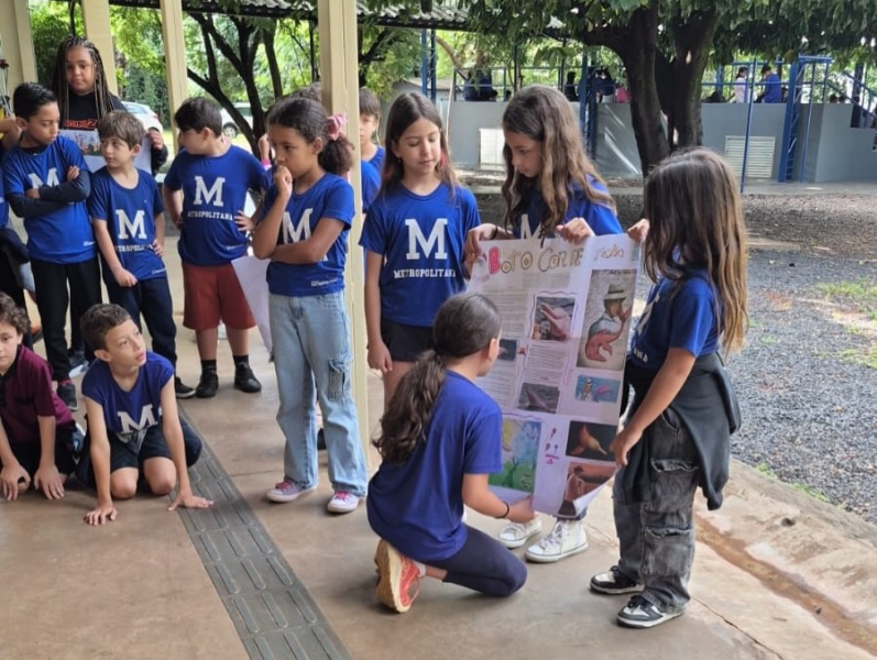 Os estudantes realizaram pesquisas em casa, compartilharam as informações com os colegas, elaboraram cartazes e apresentaram seus trabalhos nas salas da escola. A proposta proporcionou um momento significativo de aprendizado, estimulando a criatividade, o protagonismo e o desenvolvimento das habilidades de leitura, escrita e comunicação.